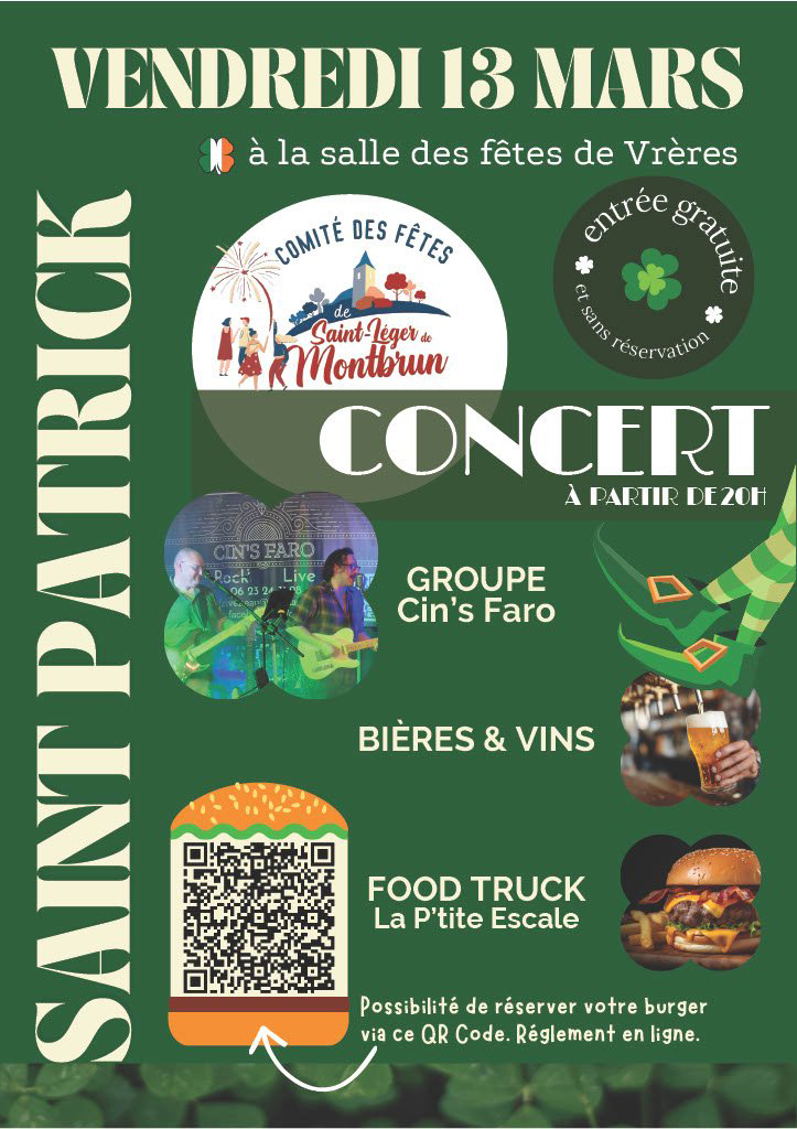 Saint Patrick à Vrères – 13 mars à 20h - Organisé par le comité des fêtes de Saint-Léger de Montbrun