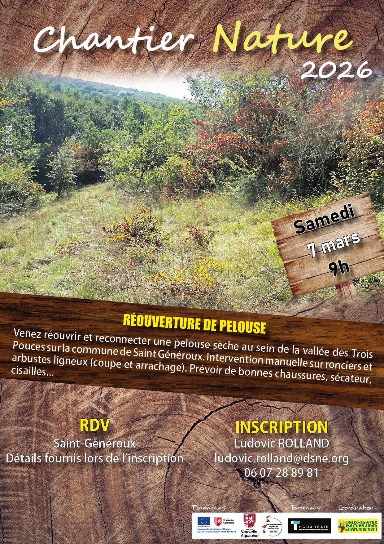 Participez à un chantier nature le samedi 7 mars à 9h à Saint-Généroux, organisé par l’association Deux-Sèvres Nature Environnement en partenariat avec la commune de Saint-Généroux.